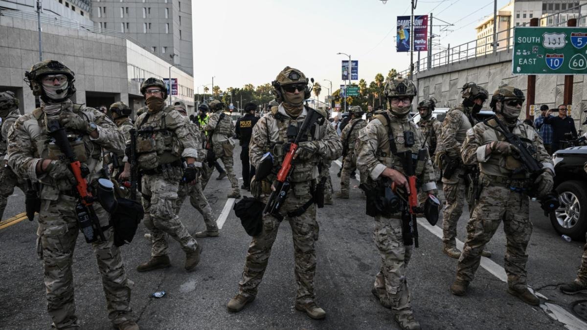 A partir de junio miles de efectivos de la Guardia Nacional y marines estadounidenses fueron desplegados en Los Ángeles para apoyar a la policía en la represión de las protestas y los disturbios provocados por las redadas migratorias de Trump.